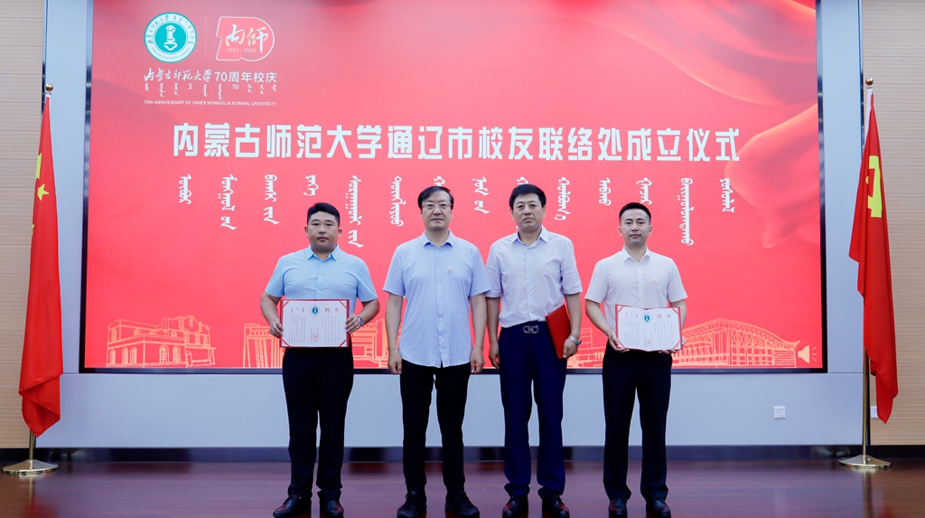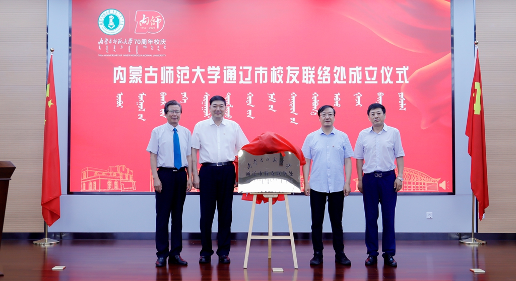 内蒙古民族大学党委副书记、校长赵东海,beat365党委委员、副校长王来喜,beat365在线唯一官网教育发展基金会理事长梁栋才,beat365在线唯一官网通辽市校友联络处主任房秀全共同为beat365在线唯一官网通辽市校友联络处揭牌