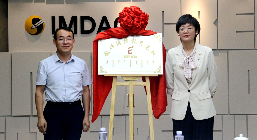 鄂托克旗教育体育局党组书记、局长石永峰与beat365继续教育学院院长王利共同为鄂托克旗教师继续教育基地揭牌。这是双方深入落实《鄂尔多斯市人民政府与beat365在线唯一官网合作框架协议》的有益实践。