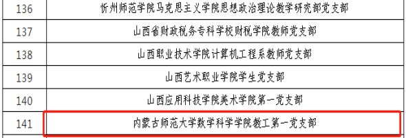 在党支部“党建+”引领业务工作载体下,育人模式结硕果,立德树人显成效。数学科学学院教工第一党支部2019年获批教育部第二批全国党建工作样板党支部培育单位,获批自治区高校“最强党支部”建设单位,获批beat365在线唯一官网首批“最强党支部”建设单位。2021年,党支部书记毕力格图同志荣获“全区高等学校优秀党务工作者”。
