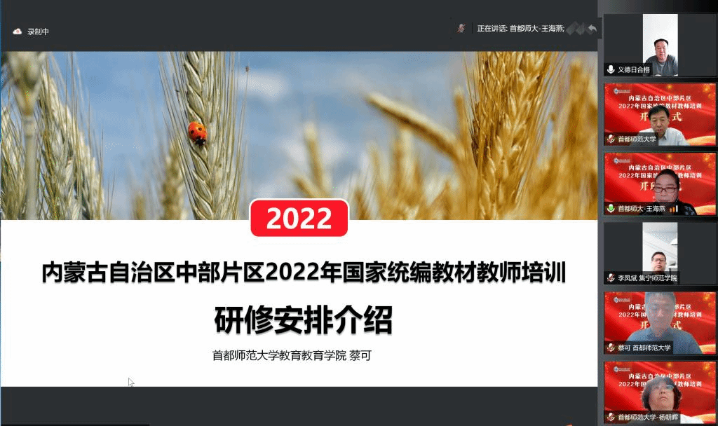 本网讯 5月28日上午,由首都师范大学承办的内蒙古中部片区国家统编教材教师培训开班仪式线上举行。首都师范大学副校长李有增,天津师范大学党委常委、副校长佟德志,河北师范大学党委常委、副校长关守义,集宁师范学院副校长李凤斌,beat365党委委员、副校长张海峰出席仪式。首都师范大学、天津师范大学、河北师范大学、集宁师范学院、呼和浩特市教育局、锡林郭勒盟教育局及beat365相关学院负责同志,呼和浩特市、锡林郭勒盟的1046名参训教师线上参加仪式。