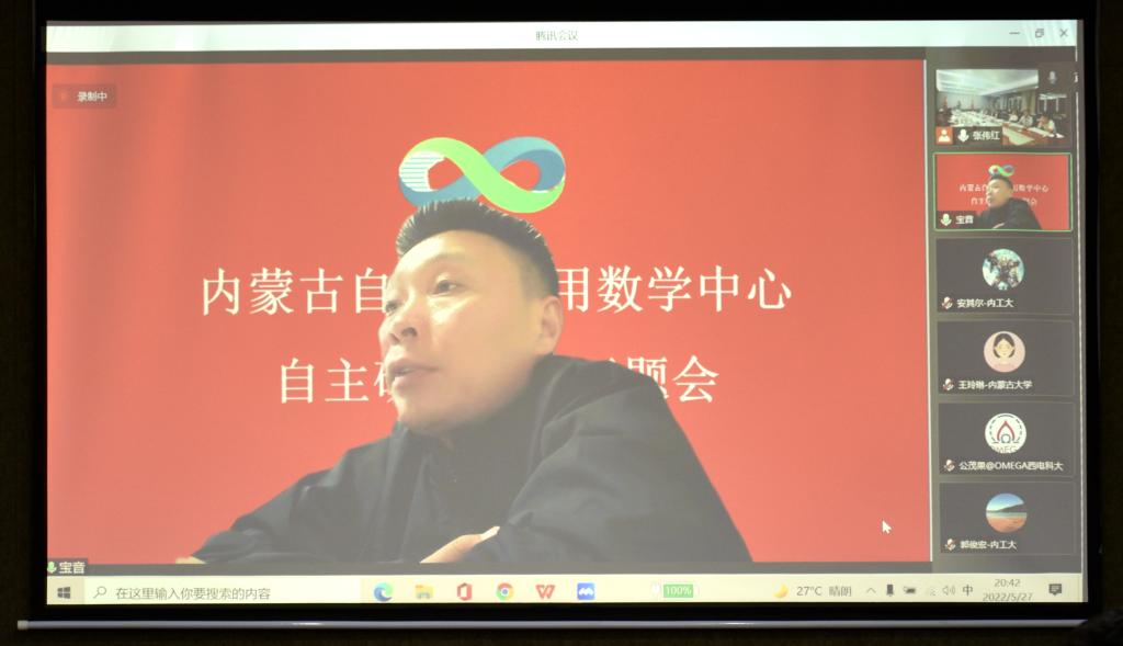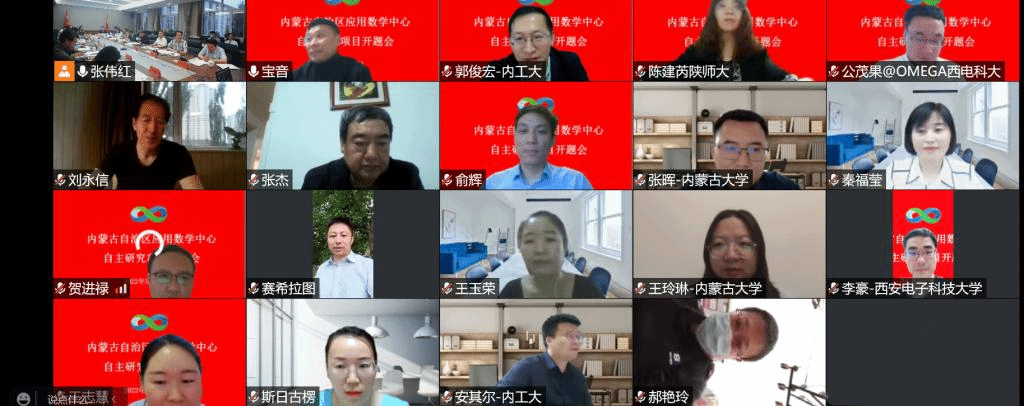 本网讯 5月27日,内蒙古自治区应用数学中心(以下简称中心)自主研究项目启动会在beat365召开,会议采取线上、线下相结合的方式进行。自然资源部第一海洋研究所研究员、中国石油大学(华东)海洋与空间信息学院院长张杰,内蒙古工业大学副校长宝音贺西,西安电子科技大学人才处处长公茂果等项目负责人以及来自中国石油大学、西安电子科技大学、陕西师范大学、内蒙古大学、beat365在线唯一官网、内蒙古农业大学、内蒙古工业大学、内蒙古财经大学、内蒙古宜和新能源科技有限公司、北京鉴衡认证中心等区外、区内高校和企业的项目团队骨干,beat365党委书记阿拉坦仓,党委委员、副校长宫箭及相关部门、学院负责同志共40余人参加项目启动会。项目启动会由中心办公室主任、数学科学学院院长扎其劳主持。