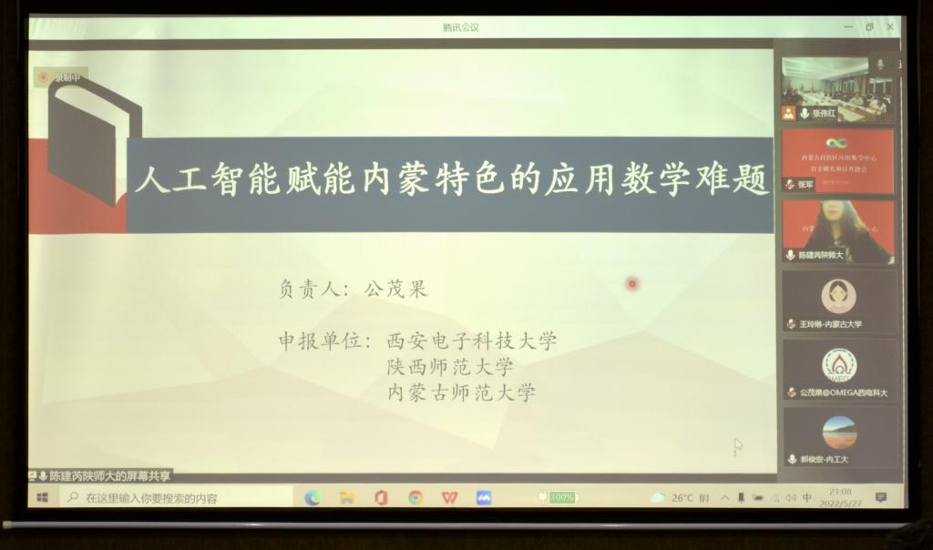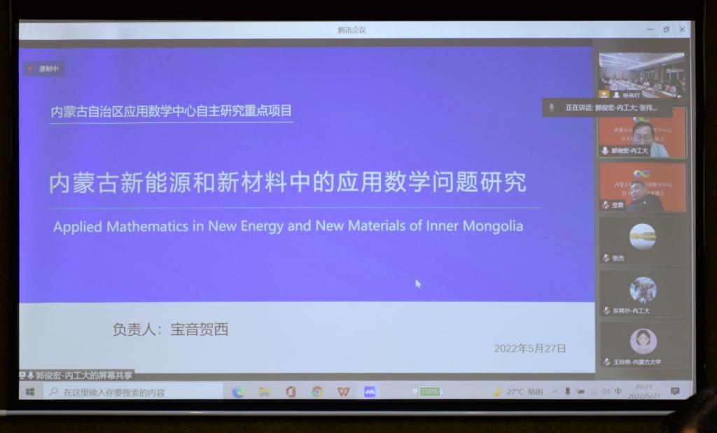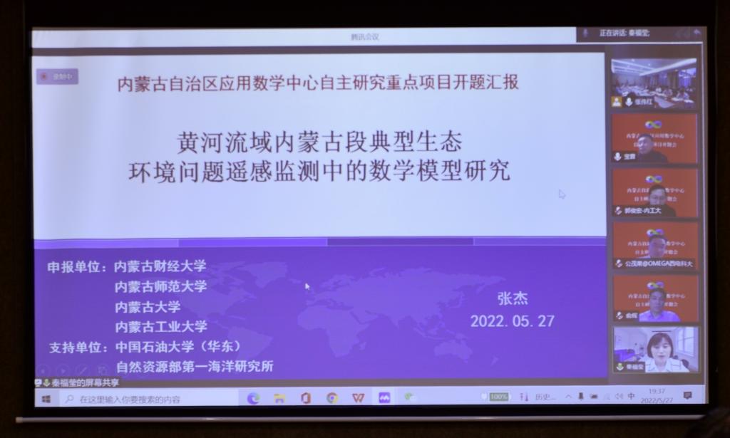 会上,《黄河流域内蒙古段典型生态环境问题遥感监测中的数学模型研究》《内蒙古新能源和新材料中的应用数学问题研究》《人工智能赋能内蒙特色的应用数学难题》等三个项目正式启动。各项目负责人汇报了项目筹备进展情况,参会专家分别进行点评和质询,项目组成员逐一作出回答。专家们一致认为,中心设立的三个项目选题明确、方案可行、特色明显,既凝练了抽象数学问题,又着眼于内蒙古当前面临的重大实际问题,正逢其时,意义重大。