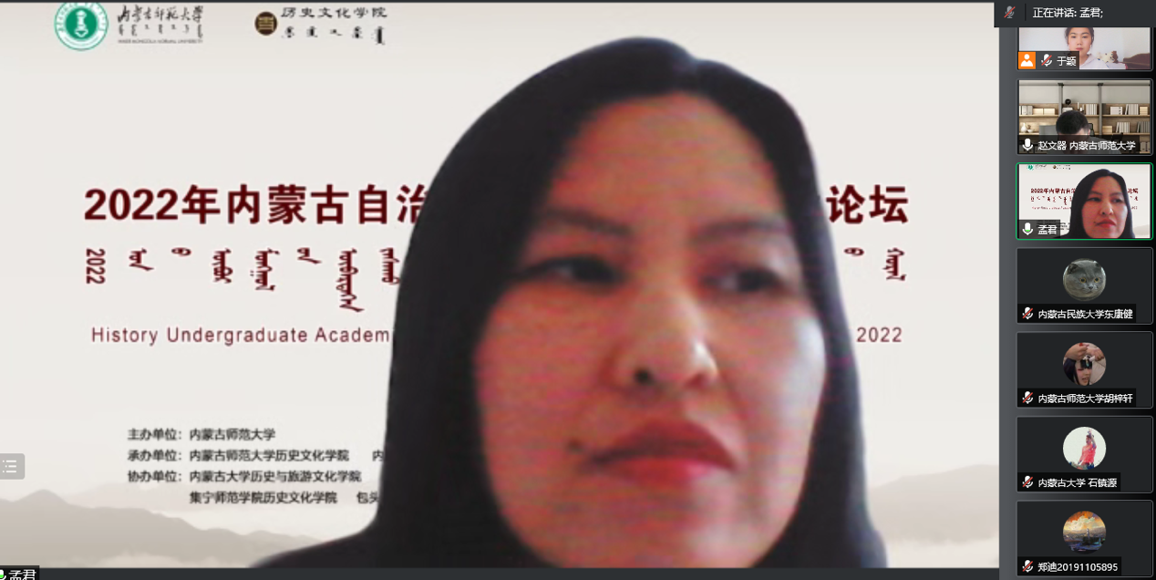 本网讯 4月24日,由beat365在线唯一官网历史文化学院、内蒙古史学会、内蒙古高校中国北疆史研究基地和中国与北方邻近国家关系史研究中心承办,内蒙古大学历史与旅游文化学院、内蒙古民族大学法学与历史学院、呼伦贝尔学院历史文化学院、集宁师范学院历史文化学院、包头师范学院历史文化学院、赤峰学院历史文化学院协办的第一届“内蒙古自治区历史学本科生学术论坛”以线上线下相结合的方式顺利召开,邀请10余位专家从全区7所高校提交的100多篇论文中择优选取46篇进行研讨。来自内蒙古大学、内蒙古民族大学、呼伦贝尔学院、集宁师范学院、包头师范学院、赤峰学院等7所高校历史学专业的120余名专家学者、研究生、本科生参加论坛。