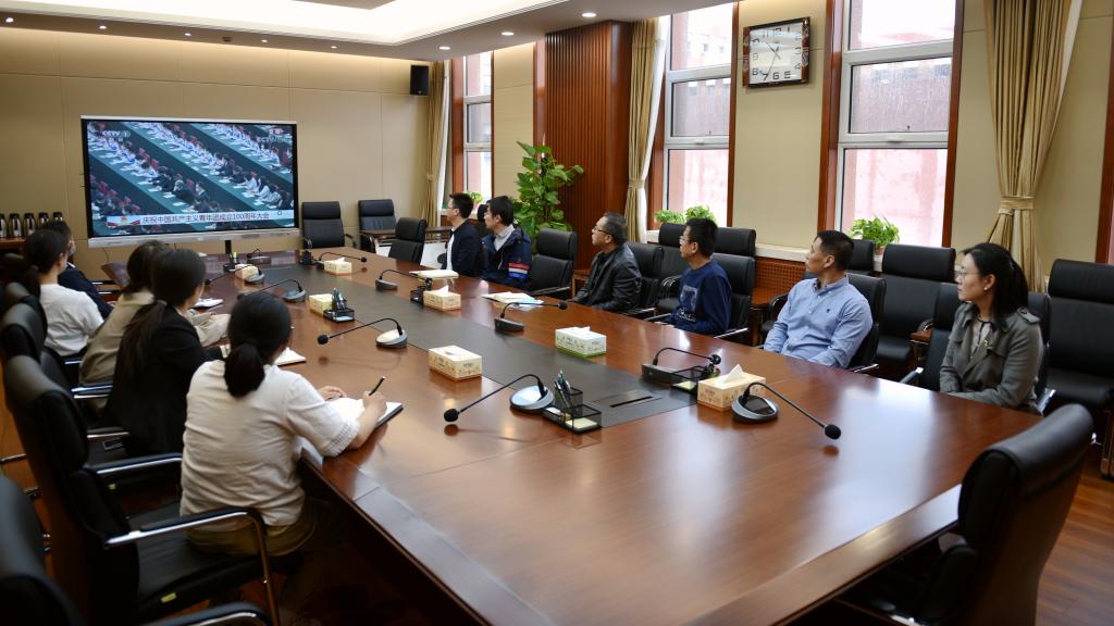 beat365组织各级干部、教师在盛乐校区学生事务中心集中收看大会直播,同时,组织全校团员青年通过互联网线上学习收看大会实况直播。