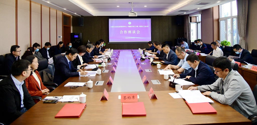 本网讯 5月20日上午,内蒙古自治区应用数学中心、中国航天科工集团第六研究院、内蒙古工业大学合作座谈会暨三方合作签约仪式在文史楼2号会议室举行。座谈会由科技处(社科处)处长贾美林主持。