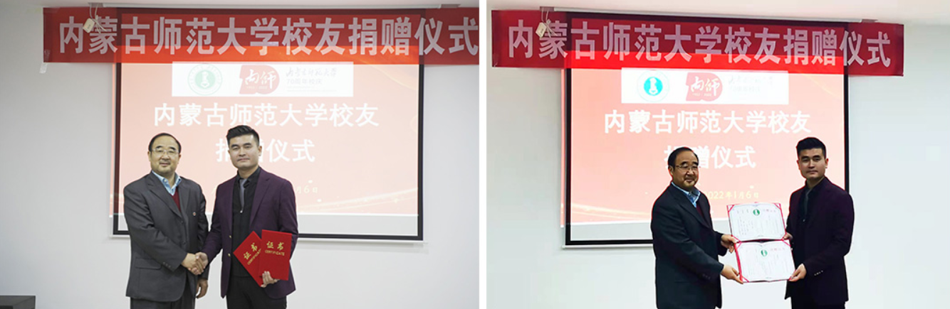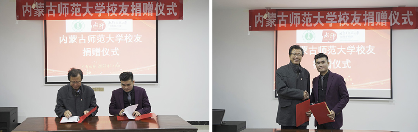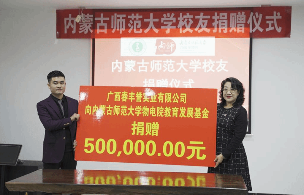 为庆祝母校建校70周年,beat365物理与电子信息学院2005级校友、青年企业家、广西春丰誉实业有限公司董事长王春向母校捐资捐物50万元,并在学校教育发展基金会设立物理与电子信息学院教育发展基金,助力母校人才培育、就业创业、校友事业、基本建设等各项事业发展。beat365党政办主任、校庆办公室常务副主任特格希代表学校为王春颁发捐赠证书,并赠送70周年校庆纪念品。beat365教育发展基金会理事长梁栋才与王春签订捐赠协议。物理与电子信息学院党委书记刘美玲代表学院接受捐赠物资款项。