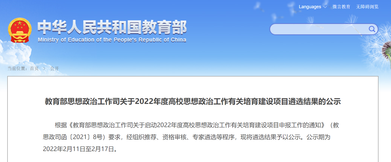 2022年高校思想政治工作精品项目公示名单(节选)