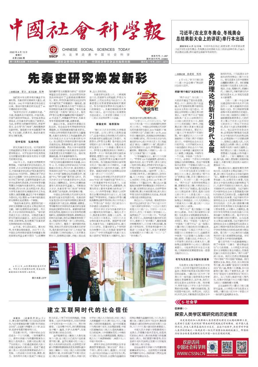 4月12日,《中国社会科学报》以《党的理论创新引领时代发展》为题,报道了内蒙古自治区大中小学思政课一体化研究基地与新时代内蒙古高校党建研究基地、上海师范大学马克思主义学院联合主办的“学习贯彻党的十九届六中全会精神”线上理论研讨会
