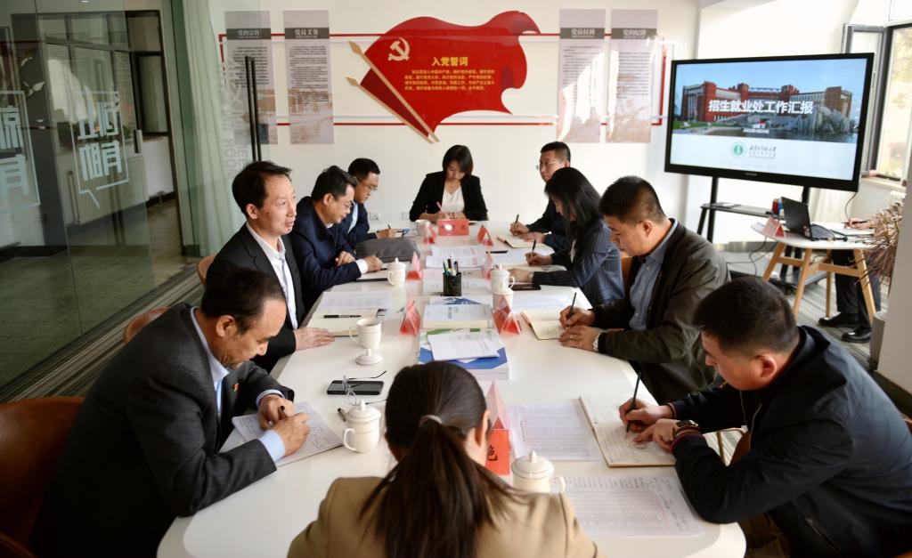 本网讯 4月24日、25日,党委副书记、校长李树林,党委委员、副校长张海峰、宫箭深入教务处、招生就业处、财务处、图书馆、人事处(党委教师工作部)、科技处(社科处)等部门调研指导工作。