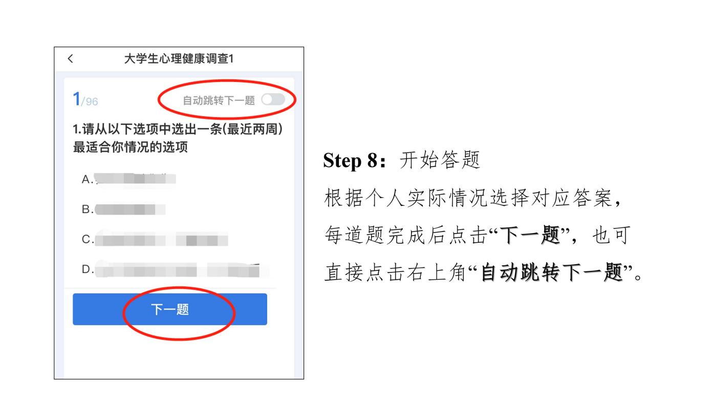 各学院组织学生在手机端进行测试(具体流程见附件:beat365在线唯一官网2022级学生心理健康普查操作步骤)