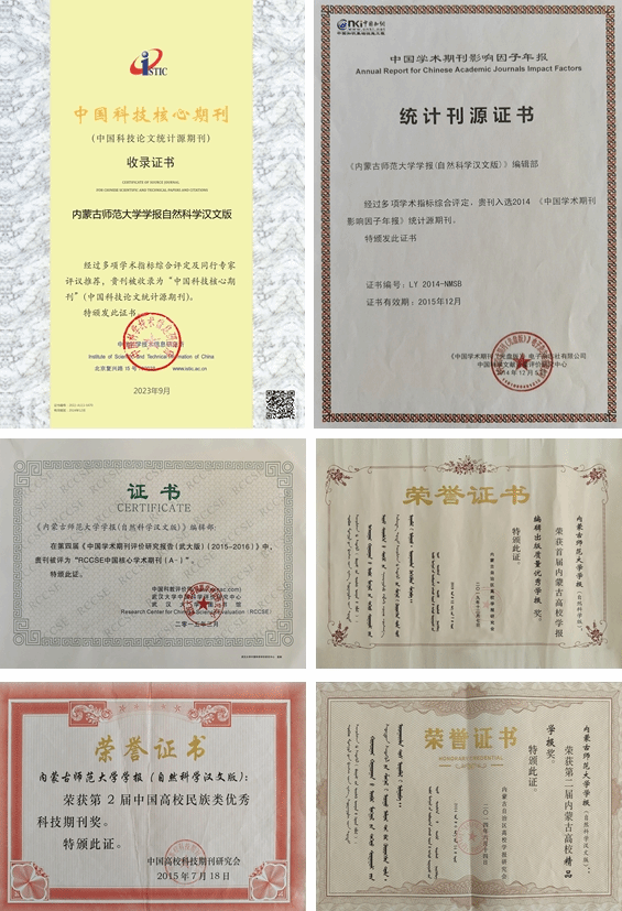 本刊多次荣获全国优秀科技期刊、内蒙古优秀科技期刊、北方地区优秀期刊奖、中国北方十佳期刊、内蒙古高校精品期刊登荣誉称号。