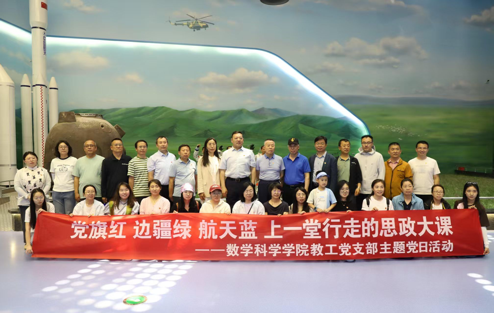 从神舟一号到神舟十一号及嫦娥六号的成功着陆,从长征火箭首飞到嫦娥六号带回月壤,内蒙古四子王旗凭借独特地形成为飞船着陆首选,四子王旗“神舟家园”的美誉享誉全国乃至全世界。在四子王旗党史教育实训基地,数学科学学院教工党支部教师党员集体参观了“神舟家园”科技展馆,深刻感受到了中国航天事业从无到有、从弱到强,实现历史性、高质量、跨越式发展,感受到了国家科技的力量和民族的自豪,进一步坚定了为党和国家事业奋斗的信心和决心。