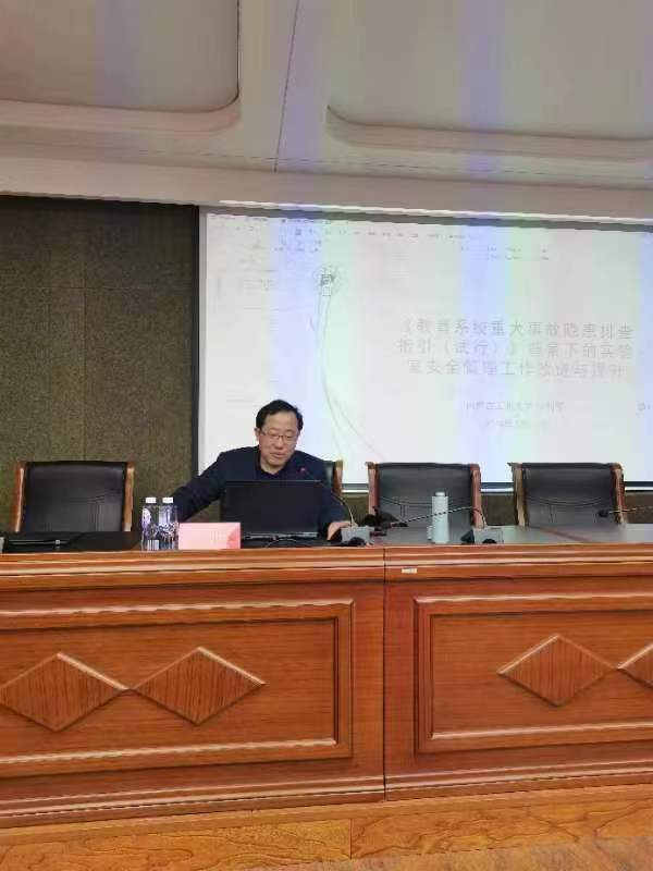 为切实增强师生实验室安全意识,加强实验室安全教育,贯彻落实《全区教育系统安全生产治本攻坚三年行动实施方案(2024-202年)》等相关文件要求,3月19日下午,beat365在赛罕校区文史楼一号会议室举办实验室安全教育培训讲座,邀请内蒙古工业大学实验管理中心(测试中心)主任李利军老师作“实验室安全工作在《教育系统重大事故隐患排查指引(试行)》背景下的改进与提升”主题报告。讲座由科技处(社会科学处)副处长周丹丹主持,各学院分管院长、实验中心主任和副主任、各实验室负责人、部分研究生参会。