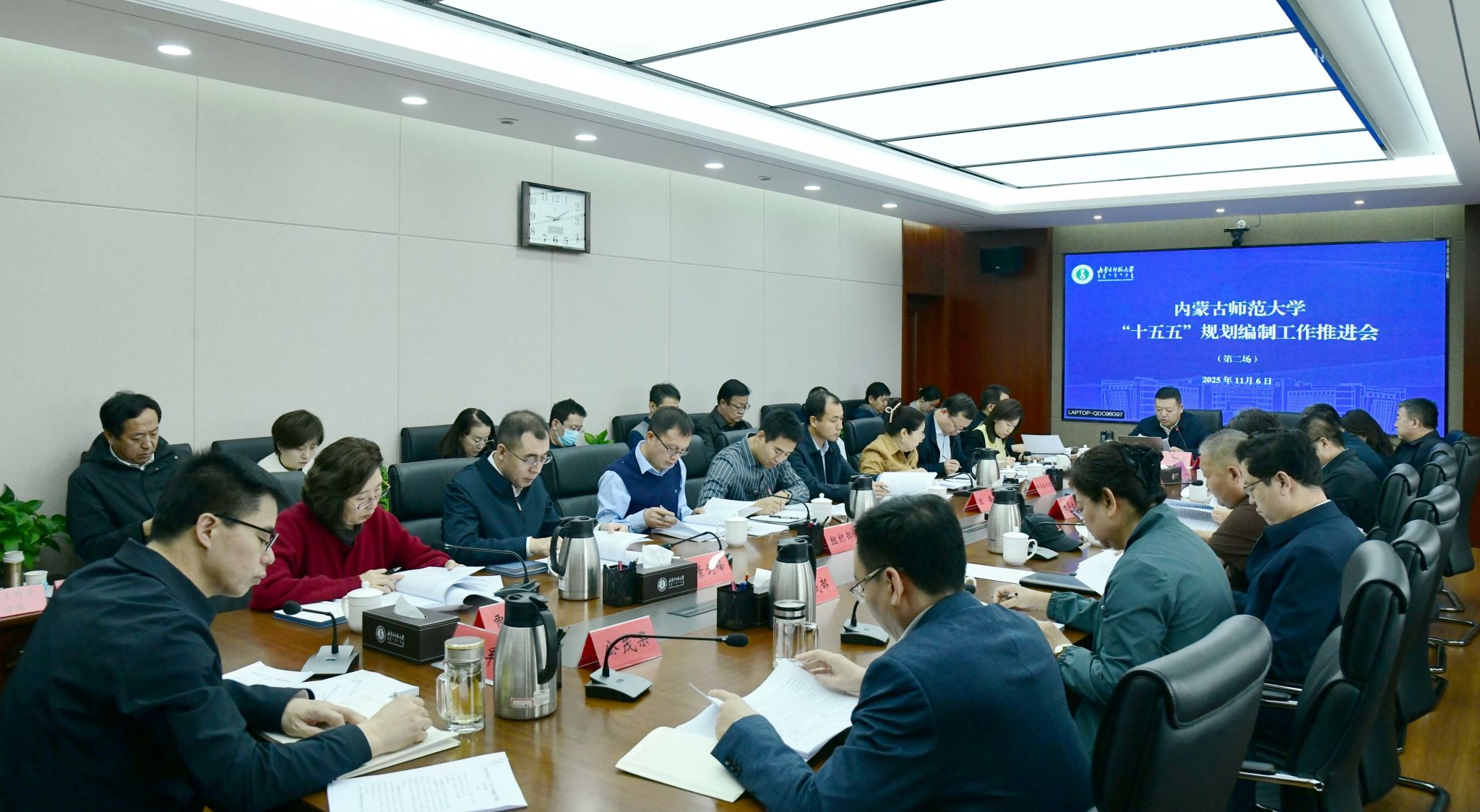 本网讯 11月5日至6日,学校在赛罕校区田家炳书院楼715会议室分两场召开“十五五”规划编制工作推进会。党委副书记、校长张军主持会议并讲话。党委副书记斯钦,副校长贾美林,党委委员、副校长公茂果、景剑峰,相关部门、各学院负责同志出席会议。