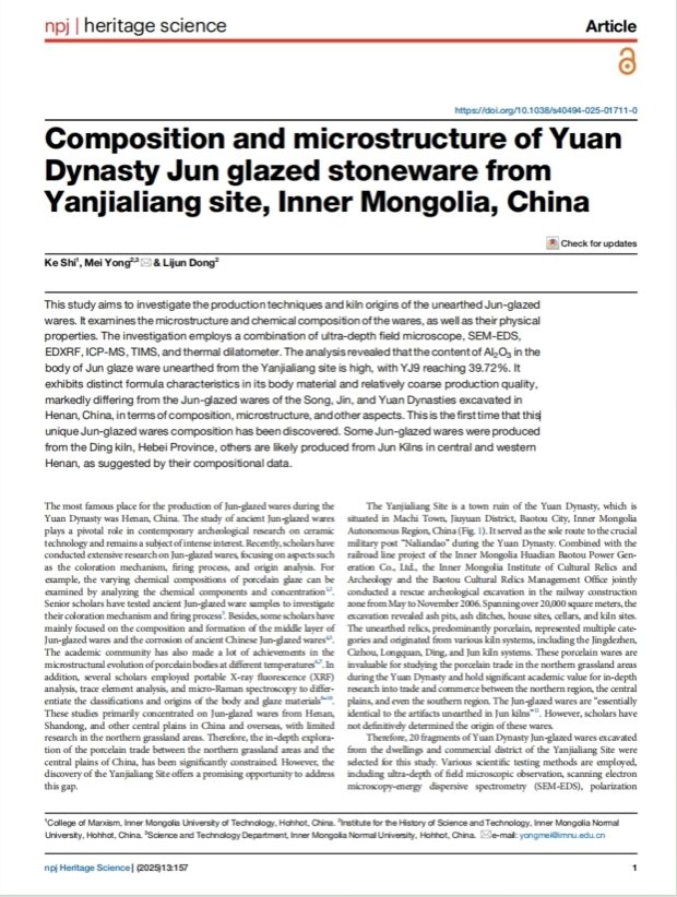 5月12日,beat365科学技术史研究院咏梅研究员团队在文化遗产领域权威期刊《np...
